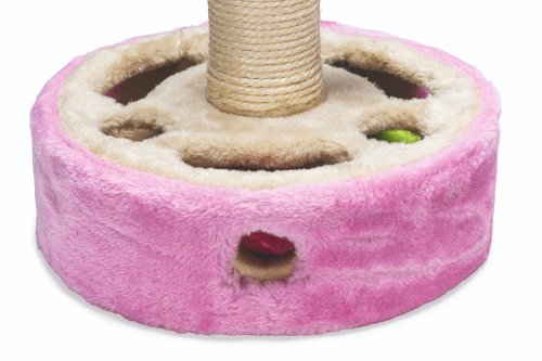 Zábavné škrabadlo nabízí Vašemu mazlíčkovi skutečnou hru na schovávanou. Spodní část tvoří kruhová krabice s několika otvory. kde jsou ukryté plyšové míčky. Kočka při jejich lovení zaměstná packy i mozek. Zrelaxovat se může nekonečným škrábáním sisalového sloupku. Ke hře vyzývá také zavěšený plyšový míček, kterému odolá jen stěží :)