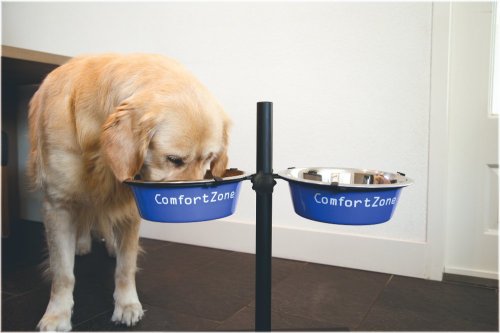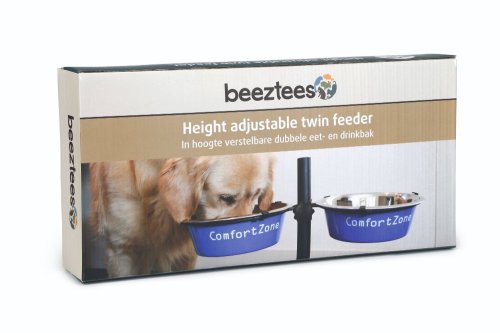 Beeztees Stojan na misky je pěkně vypadající stojan doplněný o dvě misky pro Vašeho psa. Tento stojan je výškově nastavitelný, takže si můžete vybrat tu správnou pozici pro Vašeho nejlepšího kamaráda. Díky kulatému profilu vypadá stojan H mírně odlišně od běžných stojanů. Na spodní straně jsou protiskluzové krytky, které zajišťují stabilitu a také chrání podlahu před poškrábáním. Na miskách je nápis Comfort Zone. Vyrobeno z kovu. Protiskluzový. Průměr misky: 25 cm. Objem misky 2350 ml.