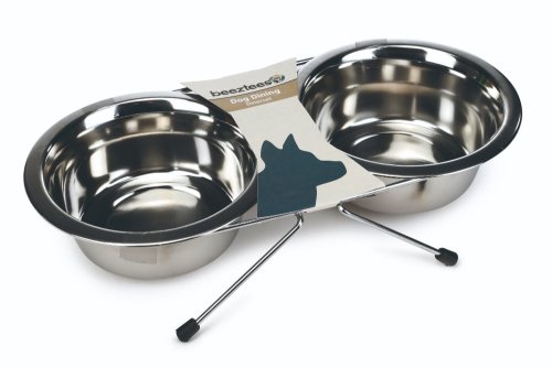 Chtěli byste mít jídlo a vodu pro svého psa na jednom místě? Pak Beeztees nerezový stojánek se dvěma nerezovými miskami nabízí to správné řešení. Tyto nerezové misky mají kvalitní lesklý povrch, který jim dodává stylový vzhled. Stojánek je vybaven protiskluzovými koncovkami, které zabraňují případnému posouvání a nežádoucímu poškrábání podlahy. Misky je možné mýt v myčce. Rozměry: průměr misky 16 cm - 0.90 l