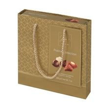 Kolekce belgických pralinek s mléčnou, hořkou a bílou čokoládou s mnoha lahodnými náplněmi a originálními tvary, včetně dárkové tašky Hmotnost: 200 g Rozměr: 20,5 x 20,5 x 4 cm