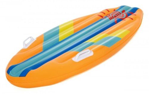 Nafukovací matrace Bestway ve tvaru surfu Sunny Rider je vhodným doplňkem nejen pro váš bazén, ale zábavu si s ním užijete i v rybníce nebo u moře. Bezpečnou a stabilní jízdu zajišťují robustní rukojeti a zpevněná středová část. Trendy barevný potisk v jasných barvách a sluneční grafikou (2 barevná provedení) si děti ihned zamilují. Snadné nafouknutí, vyfouknutí a složení.