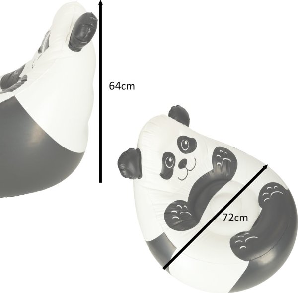 roztomilý design - usměvavá panda bude dokonalým společníkem při plnění domácích úkolů nebo při relaxaci, fantastický komfort - díky nafukovací konstrukci je odpočinek na křesílku velmi příjemný, vysoká nosnost - maximální nosnost 70 kilogramů, takže je vhodný pro děti všech věkových kategorií, lze používat doma i na zahradě, součástí je i opravná záplata na drobná poškození, rozměry sedadla: 72 x 72 x 64 cm.
