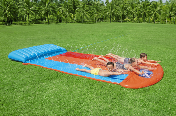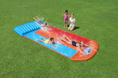 Zábavná vodní skluzavka pro osvěžení během letních dní. Můžeš se klouzat, jak jen tě napadne - nohama napřed, po kolenou nebo na zádech.