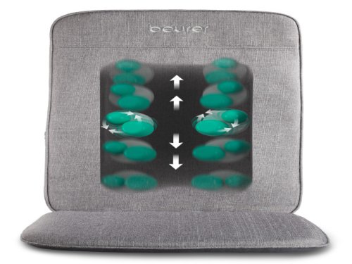 Masážní podložka SHIATSU. Masáž, se dvěma úrovněmi intenzity, volba místa, horní část zad, dolní část zad, celá záda. Rozměr: 70x42 cm záda, sedák 40x43 cm