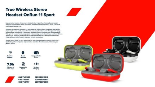 Sluchátka OnRun 11 Sport jsou k dispozici v řadě zářivých barev, které odpovídají vašemu stylu a dodají vašemu tréninku osobitost.