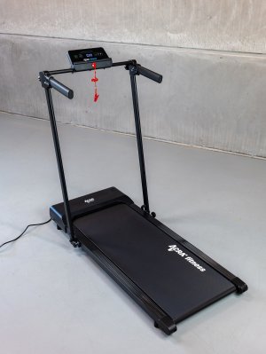 Na pásu najdete krátký držák s měkkými rukojeťmi, který zajistí potřebnou stabilitu při pohybu. Rukojeti v sobě mají integrovaný snímač tepové frekvence, díky kterému můžete zaznamenávat svůj výkon. V případě nutnosti vám rychlobrzda umožní pás okamžitě vypnout. Stačí vysunout bezpečnostní klíč a pás se zastaví. Velkou výhodou pásu je jeho skladnost. Je široký 13 cm a váží 21 kg. Snadno ho složíte a umístíte třeba za skříň.