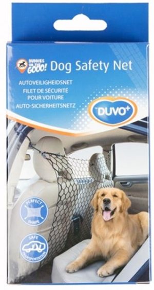 Bezpečnostní nylonová autosíť DUVO+. Síť lze pohodlně chytit za madla v autě.