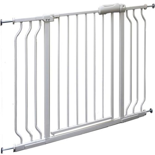 Bezpečnostní zábrana pro psy Nastavitelná kovová zabraná do dveří k zamezení vstupu do prostor, kam nechceme, aby pes měl přístup. Zabrání přístupu do prostor v domě a zároveň, díky snadnému otevírání a zavírání, nebude překážet při každodennímu pohybu v domácnosti. Zábranu lze použít ve dveřích, chodbách a schodištích o šířce 75 až 110 cm díky použití přídavných dílů k rozšíření. Balení obsahuje 1 bezpečnostní zábranu se zavíráním, 2 díly pro rozšíření a 4 šrouby. K instalaci není třeba žádné nářadí. Nastavovací šrouby jsou opatřeny ochrannými nástavci, které zabrání poškození dveřních rámu nebo stěn. Doporučujeme zastínit zábranu přehozením deky, která pomůže zajistit psovi větší klid za zabranou.