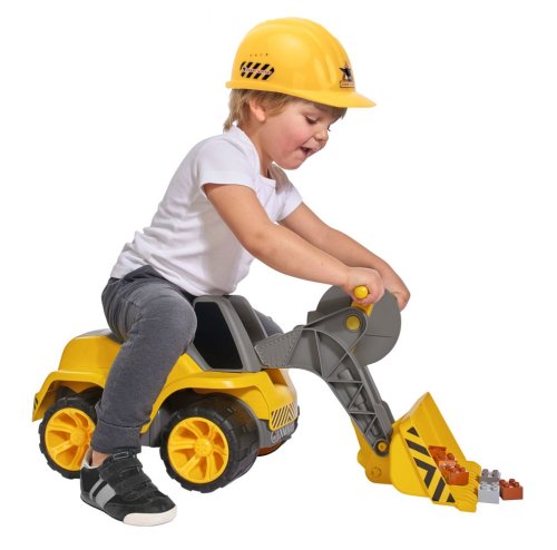 Robustní nakladač z kvalitního plastu, s pohyblivým nakládacím zařízením a ergonomickým pohodlným sedadlem. Široké omyvatelné pneumatiky vyrobené z měkkého materiálu z něj činí ideální hračku pro vnitřní i venkovní použití. Nosnost: 50 kg; výška sedadla: 22 cm.