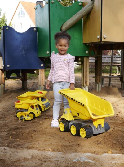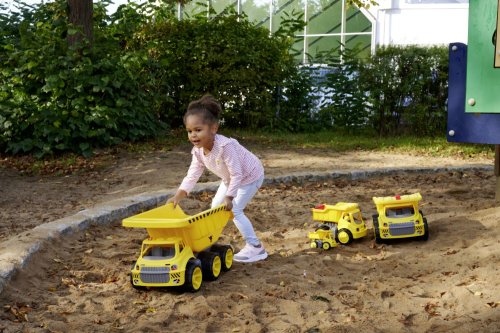 Mega sklápěčka z robustního plastu, 6 kol z měkkého plastu, nezanechává stopy na podlaze, kapacita 12,8 litrů nebo 25 kg. Snadná údržba. Rozměry výrobku (DxŠxV) 65x31x36 cm.