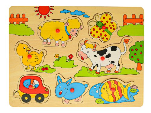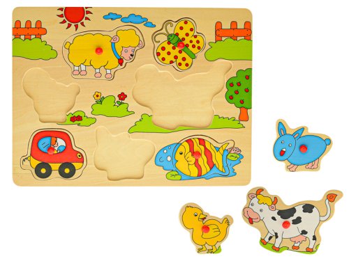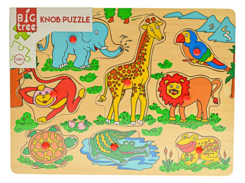 Dřevěná vkládačka z kolekce Big Tree. Každý díl má na sobě úchyt pro jednodušší manipulaci. Děti se naučí rozeznávat tvary a procvicí si jemnou motoriku. Vkládačka má rozměr 30x22,5 cm. Dostupné jsou 3 druhy - zvířátka, farma, safari. Vhodné pro děti od 12 měsíců.