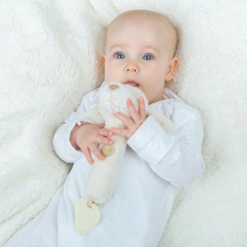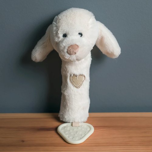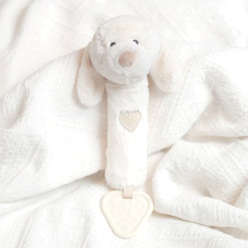 Chrastítko, pískátko a kousátko v jednom. Tento super měkký pejsek byl vyroben za použití měkkých a bezpečných materiálů, které jsou laskavé k dětské pokožce. Hračka je designována tak, aby dětem pomohla při rozvoji, bude perfektním dárkem pro novorozeňata. Děti mohou ulevit svým dásním na robustním kousátku nebo hračku mohou zmáčknout a ona zapíská! Hlavní vlastnosti: hračka má neutrální barvuperfektní velikost pro dětské rucevyrobeno z kvalitních materiálů ze zodpovědných zdrojůsplňuje evropské bezpečnostní standardyvhodné již od narození