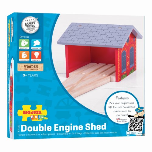 Dřevěné železniční depo pro 2 vláčky včetně vjezdové koleje.Kompaktní a dobře navržené depo má schopnost uložit až 2 vlaky. Skvělý doplněk dřevěné vláčkodráhy pokud máte v daném okamžiku přebytek vašich vláčků nebo pokud je jen potřebujete nechat odpočinout nebo natankovat.Hlavní vlastnosti: vláčkodráhy a jejich příslušenství značky Bigjigs Rail je možno kombinovat se všemi dalšími dřevěnými vláčkodráhami na trhuvyrobeno z kvalitních a zodpovědně získaných přírodních materiálůodpovídá současným evropským bezpečnostním normámpodporuje představivost, obratnost a koordinaci