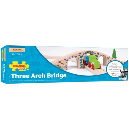 Potřebujete-li překonat vlakem řeku, silnici nebo křížení s jinou dráhou, pak budete potřebovat právě tento troj-obloukový most. S detaily kamenných cihel po jeho stranách a kvalitní povrchovou úpravou je tento most ceněným doplňkem každé dřevěné vláčkodráhy.Součástí balení je vše dle obrázku. Hlavní vlastnosti: vláčkodráhy a jejich příslušenství značky Bigjigs Rail je možno kombinovat se všemi dalšími dřevěnými vláčkodráhami na trhuvyrobeno z kvalitních a zodpovědně získaných přírodních materiálůodpovídá současným evropským bezpečnostním normámpodporuje představivost, obratnost a koordinaci