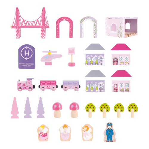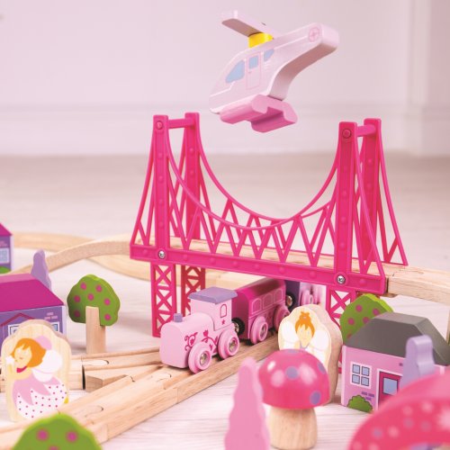 Originální vláčkodráha nejen pro malé slečny s veškerým příslušenstvím, 75 kusů v odstínech růžové a fialové. Hlavní vlastnosti: vláčkodráhy a jejich příslušenství značky Bigjigs Rail lze kombinovat se všemi ostatními dřevěnými železničními drahami na trhuvyrobeno z kvalitních a zodpovědně získaných přírodních materiálůodpovídá současným evropským bezpečnostním normámpodporuje představivost, obratnost a koordinaci