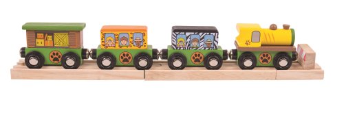 Bigjigs Rail Safari vláček má vozy plné horlivých průzkumníků, kteří jsou připraveni jít do dobrodružství v džungli. Jakých divokých zvířat si dnes mohou všimnout? Krokodýl? Opice? Žirafa? Skvělý doplněk ke dřevěné soupravě. Tato sedmimístná sada obsahuje dřevěnou lokomotivu se třemi vozíky a dva kusy dřevěné dráhy a nárazník. Hlavní vlastnosti: Vláčkodráhy a jejich příslušenství značky Bigjigs Rail je možno kombinovat se všemi dalšími dřevěnými vláčkodráhami na trhu.Vyrobeno z kvalitních a zodpovědně získaných přírodních materiálů.Odpovídá současným evropským bezpečnostním normám.Podporuje představivost, obratnost a koordinaci.