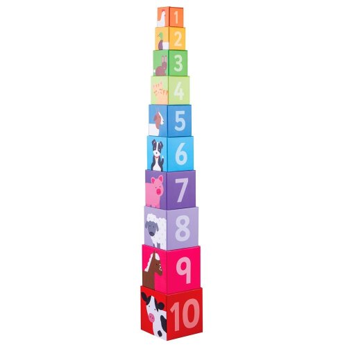 Abyste vytvořili věž, musíte tyto kostky naskládat od největší po nejmenší. Každá kostka obsahuje ilustraci z prostředí farmy, číslo a tečky, které představují dané číslo. Při skládání děti mohou diskutovat o farmě a rozšiřovat si tak slovní zásobu, také mohou počítat tečky a pak si svůj výsledek zkontrolovat dle čísla na opačné straně – naučí se počítat a poznávat čísla. Tyto kostky pomohou dětem s učením a podpoří je v brzkém počítání, čtení, poznávání barev a tvarů. Až si děti dohrají, mohou kostky naskládat na sebe, nezaberou tak moc úložného prostoru. Hlavní vlastnosti: rozvíjí koordinaci ruka-oko, jemnou motoriku a zručnostvyrobeno z kvalitních materiálů z odpovědných zdrojůodpovídá evropské bezbečnostní normě