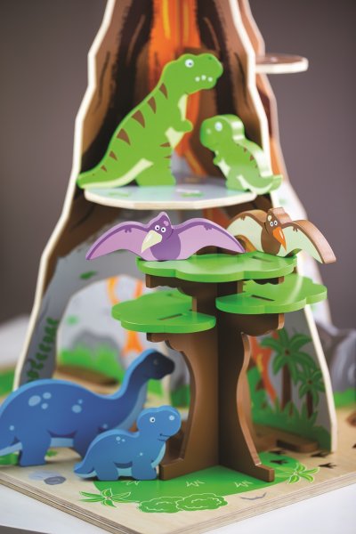Vraťte se zpět do časů, kdy dinosauři vládli Zemi. Hrací sada Ostrov dinosaurů obsahuje 8 dinosaurů, hnízdo a 2 vejce, vodopád a volně stojící strom. Stromem se dá pohybovat. Z dinosaurů na děti čeká mimo jiné velký Brontosaurus s mládětem a také 2 Pterodaktylové. Schovejte se za vodopádem, vylezte na sopku nebo balancujte na skalní římse, ale pozor na lávu! Tato sada děti naučí něco o dinosaurech a čase, kdy žili. Jednoduše složte dřevěné dílky do sebe a prehistorická krajina je připravena ke hraní. Ostrov dinosaurů pomáhá a rozviíjí zručnost, představivost, sociální dovednosti a koordinaci dětí. Obsahuje 13 hracích dílků. Vyrobeno z kvalitních materiálů z odpovědných zdrojů. Hlavní vlastnosti: 13 hracích dílů 8 dinosaurů (Brontosaurus s mládětem, 2 Pterodaktylové a další)hnízdo2 vejcevodopád strom, kterým se dá pohybovat jednoduché složenírozvíjí zručnost, představivost a učení dětí o dinosaurech a čase, ve kterém žili