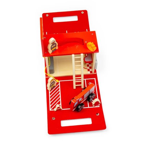 Vydejte se na záchrannou misi kdykoli a kdekoli! Tato kompaktní hasičská stanice je součástí kolekce přenosných herních sad a díky skládacím plstěným bokům se snadno sbalí i přenáší. Sada nabízí vše, co malý hasič potřebuje pro dobrodružnou hru na cestách. Děti si mohou přehrávat napínavé záchranné akce s hasičským autem, dvěma figurkami hasičů a dalšími doplňky. Dřevěná stanice zároveň slouží jako praktické úložný box i herní prostor. Nechybí ani žebřík, hadice, bezpečnostní kužel a požární hydrant, které rozšiřují možnosti kreativního vyprávění. Hra podporuje rozvoj fantazie, komunikačních dovedností i sociální interakce při společném hraní. Díky kompaktnímu provedení, snadnému úklidu a pevné rukojeti je sada ideální na cesty, dovolenou i návštěvy. Vyrobeno z kvalitního FSC® certifikovaného dřeva z udržitelných zdrojů. Sada je odolná, bezpečná a dodává se ve 100% recyklovatelném balení bez plastů – skvělá volba pro ekologicky smýšlející rodiny. Hlavní vlastnosti: přenosná dřevěná herní sada se skládacími plstěnými bokyobsahuje 8 dílů: hasičské auto, 2 figurky hasičů, žebřík, hadice, kužel a hydrantdřevěná stanice slouží i jako úložný boxpraktická rukojeť pro snadné přenášenípodporuje kreativitu, fantazii a sociální dovednostivyrobeno z FSC® certifikovaného dřeva100% recyklovatelné balení bez plastůvhodné pro děti od 2 let Značka a certifikát FSC® (Forest Stewardship Council) zaručuje, že dřevo, ze kterého byl produkt vyroben, nebylo vytěženo nelegálně a pochází z lesů obhospodařovaných šetrným či přírodě blízkým způsobem, ve kterém jsou dodržovány přísné environmentální a sociální požadavky. Značka FSC® na výrobku znamená, že svým nákupem pomáháte chránit lesy a podporujete šetrné, odpovědné či přírodě blízké hospodaření, díky kterému jsou naše lesy stabilnější, zdravější, mají přirozenou druhovou skladbu a lépe odolávají negativním následkům klimatických změn.