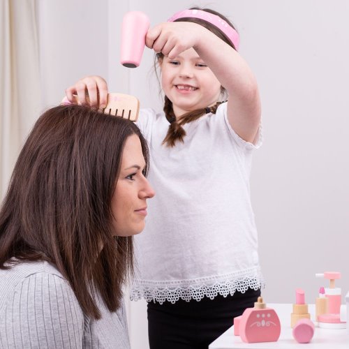 Tato 11dílná sada obsahuje lahvičku, krém na ruce, zrcátko, hřeben, lak na nehty, rtěnku, parfém, fén, kompaktní pudr, čelenku a 2 mašličky do vlasů. Vše dodáváno v barevném přenosném kufříku s rukojetí. Praktické balení dělá z tohoto kufříku i společníka na cesty. Hlavní vlastnosti: podporuje sociální a jazykové dovednosti podporuje kreativní a nápadité hranívyrobeno z vysoce kvalitních a zodpovědně pocházejících materiálůodpovídá současným evropským bezpečnostním normám