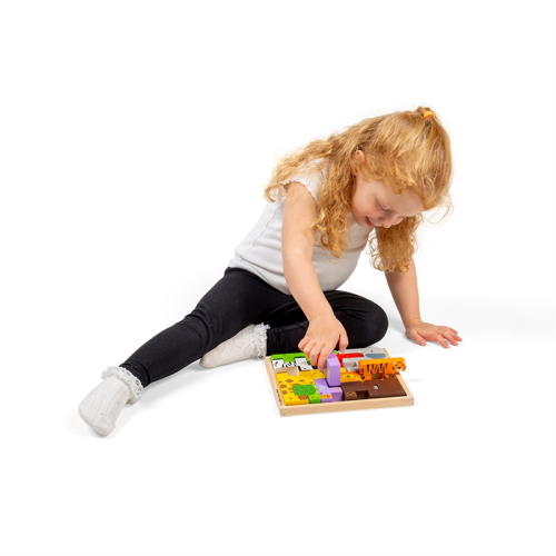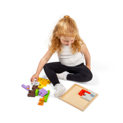 Zábavné puzzle pro děti s roztomilými ilustracemi exotických zvířátek. Hra napomáhá koordinaci ruka-oko, rozvíjí logické myšlení, znalosti a slovní zásobu dětí a také schopnosti rozpoznávat barvy a tvary. Neslouží pouze jako puzzle, ale díky vhodně zvolenému tvaru jednotlivých zvířátek si mohou děti postavit vlastní Safari a hrát si s nimi jako s plnohodnotnými hračkami. Toto smyslové puzzle je skvělým dárkem pro každé dítě. Vyrobeno z vysoce kvalitních, zodpovědně získaných materiálů a odpovídá současným evropským bezpečnostním normám. Hlavní vlastnosti: rozvíjí koordinaci ruka-oko a stimuluje smyslyvyrobeno z kvalitních zodpovědně získaných materiálvhodné od 1,5 roku