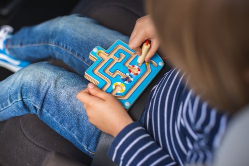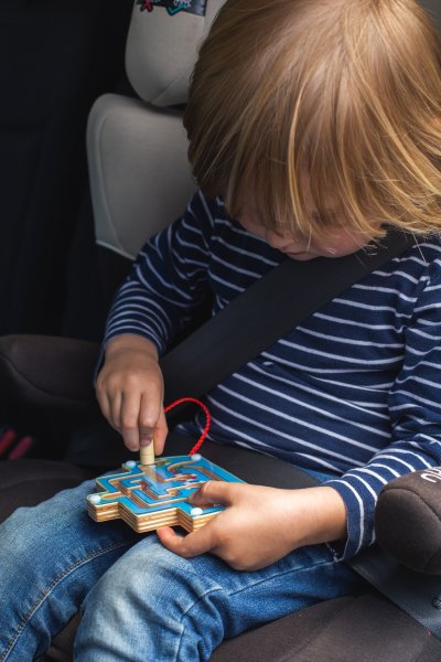 Cena je uvedena za 1 ks. Hra dovedností a soustředění. Pomocí magnetického pera připevněného k desce musí děti vést barevné dřevěné korálky po bludišti a nasměrovat je do správněho barevného důlku. Jakmile bude poslední korálek umístěn do správně barevného bodu, děti pocítí pocit úspěchu a chtějí si hrát znovu a znovu! Magnetické pero je připojeno a korálky jsou uzavřeny uvnitř bludiště, aby se žádné kousky neztratily! Skvělá zábava na cestách! Rozvíjí koordinaci ruka - oko a zručnost. Podporuje trpělivost. Hlavní vlastnosti: na výběr ze 4 motivů - lokomotiva, letadlo, loď a autorozvíjí koordinaci ruka - oko a zručnostideální na cestyvyrobeno z vysoce kvalitních, zodpovědně získaných materiálůsplňuje aktuální evropské bezpečnostní normy