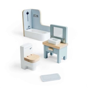 Žádný domeček pro panenky není kompletní bez koupelny! Dopřejte panenkám relaxační koupel nebo je připravte na nový den s touto elegantní dřevěnou koupelnovou sadou. Moderně laděná sada obsahuje vše, co malá domácnost potřebuje – vanu se sprchou, toaletu i umyvadlo se zrcadlem. Jemné barevné provedení a kvalitní dřevěné zpracování dodávají koupelně realistický vzhled a umožňují dětem vytvářet vlastní příběhy z každodenního života. Při hře si děti přirozeně rozvíjejí fantazii, vyjadřování i sociální dovednosti a učí se napodobovat běžné hygienické návyky. Nábytek je vyroben z prvotřídního, odpovědně získaného dřeva s certifikací FSC®, takže je bezpečný, odolný a šetrný k životnímu prostředí. Sadu lze snadno kombinovat s dalším nábytkem do domečku pro panenky a vytvořit tak harmonický domov podle dětských představ. Hlavní vlastnosti: koupelnová sada do domečku pro panenkyobsahuje 4 kusy nábytku: vanu se sprchou, toaletu, umyvadlo se zrcadlem, koupelnovou předložkupodporuje nápadité hraní, vyprávění příběhů a rozvoj sociálních dovednostípomáhá dětem napodobovat každodenní rutiny a budovat samostatnostvyrobeno z kvalitního dřeva s certifikací FSC®odolné provedení vhodné pro každodenní hraníkompatibilní s většinou standardních domečků pro panenkyvhodné pro děti od 3 let Značka a certifikát FSC® (Forest Stewardship Council) zaručuje, že dřevo, ze kterého byl produkt vyroben, nebylo vytěženo nelegálně a pochází z lesů obhospodařovaných šetrným či přírodě blízkým způsobem, ve kterém jsou dodržovány přísné environmentální a sociální požadavky. Značka FSC® na výrobku znamená, že svým nákupem pomáháte chránit lesy a podporujete šetrné, odpovědné či přírodě blízké hospodaření, díky kterému jsou naše lesy stabilnější, zdravější, mají přirozenou druhovou skladbu a lépe odolávají negativním následkům klimatických změn.