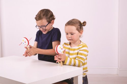 Tento dřevěný rotační bubínek je lehký, odolný a je ideální jako první úvod do světa hudby a rytmu. Skvělý způsob, jak povzbudit kreativitu. Jednoduše otočte buben mezi dlaněmi a korálky zasáhnou buben, čímž vytvoří jasný zvuk. Perfektní velikost pro malé děti již od 10 měsíců. Vyrobeno z vysoce kvalitních materiálů. Odpovídá současným evropským bezpečnostním normám. Hlavní vlastnosti: rozvíjí zručnost a kreativituhravý úvod do světa zvuku a rytmuvyrobeno ze dřeva