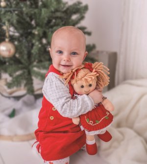 Proužkované pyžamo modré barvy. Šaty lze obléci na panenky velikosti 28cm. Součástí balení je také věšáček. Hlavní vlastnosti: vhodné pro panenky o velikosti 28 cmtrénuje motoriku hravou formouvčetně věšáčku
