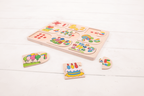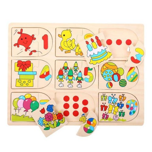 Vaši malí zvědavci budou určitě milovat tohle malé, zajímavé a chytré puzzle. Nejen, že je bude bavit třídit kousky do správných míst, ale mohou vkládat jen samotné obrázky a k nim pak přiřadit ta správna čísla. Každý kousek dřevěné skládačky je dimenzovaný tak, aby usnadnil zvedání, uchopení v malé dětské ručičce. Puzzle jsou potištěny obrázky nebo barvami, které napomáhají procesu učení a dodávají vzdělávací hodnotu. Skvělý způsob, jak rozvíjet obratnost, rozpoznávání tvarů, koncentraci a počítání již od útlého věku. Hlavní vlastnosti: vyrobeno z vysoce kvalitních materiálů ze zodpovědných zdrojůodpovídá současným evropským bezpečnostním normám