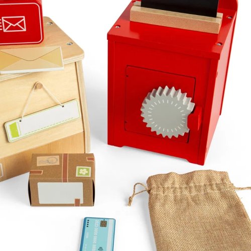 Co všechno se dělá na poště? Malí pošťáci mohou zažít rušný den tříděním a doručováním pošty s vlastní poštovní sadou! Sada obsahuje vše, co potřebuje správný pošťák ke své práci: poštovní schránku, pokladnu, váhu, pytel na balíky, balíky, dopisy, pohlednice, razítko a další. Hraní rolí je vynikající pro dětskou představivost, kreativitu, sociální dovednosti a rozvoj jazyka. Role zaměstnanců pošty nebo zákazníků také zlepší jejich komunikační schopnosti při procvičování mluvení, poslechu, čtení a psaní. Sada je vyrobena z prvotřídního a udržitelného dřeva s certifikací FSC® a nabarvena netoxickými barvami a laky. Splňuje aktuální evropské bezpečnostní normy. Obsah balení: poštovní schránka s tabulí, pokladna, váha, pytel, balíky, dopisy a pohlednice, kreditní karta a terminál, razítko, účtenky Hlavní vlastnosti: 19 dílůrozvíjí představivost, kreativitu, sociální dovednostipodporuje hraní rolívyrobeno ze dřeva s certifikací FSC®vhodné od 3 let věku Značka a certifikát FSC® (Forest Stewardship Council) zaručuje, že dřevo, ze kterého byl produkt vyroben, nebylo vytěženo nelegálně a pochází z lesů obhospodařovaných šetrným či přírodě blízkým způsobem, ve kterém jsou dodržovány přísné environmentální a sociální požadavky. Značka FSC® na výrobku znamená, že svým nákupem pomáháte chránit lesy a podporujete šetrné, odpovědné či přírodě blízké hospodaření, díky kterému jsou naše lesy stabilnější, zdravější, mají přirozenou druhovou skladbu a lépe odolávají negativním následkům klimatických změn.