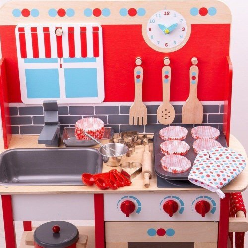 Tato komplexní sada na pečení povzbudí každého mladého kuchaře, aby rozvíjel své dovednosti. Obsahuje plech na pečení, chňapku, formu na bochník, šlehací metlu, dřevěný váleček, misku, sadu odměrných lžíc a šest vykrajovátek na pečivo. Hlavní vlastnosti: skvělý pomocník do úvodu k umění pečenípodporuje kreativní a nápadité hraní součástí balení je vše dle obrázkusplňuje aktuální evropské bezpečnostní normyskládá se z 23 hracích prvků