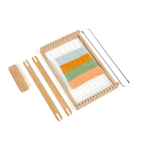 Kreativní mládež si zamiluje tento tradiční dřevěný tkalcovský stav, který obsahuje 4 příze a výběr základních nástrojů. Dřevěný tkalcovský stav je robustní a zároveň ideální velikosti pro malé ručičky. Pomáhá rozvíjet jemné motorické dovednosti, kreativitu, soustředění a trpělivost. Tkalcovský stav je vyroben z dřeva s certifikací FSC®. Splňuje všechny aktuální evropské bezpečnostní normy. Hlavní vlastnosti: pomáhá rozvíjet obratnost a koncentracivyrobeno z vysoce kvalitních, zodpovědně získaných materiálůsplňuje aktuální evropské bezpečnostní normyobsahuje 10 dílů Značka a certifikát FSC® (Forest Stewardship Council) zaručuje, že dřevo, ze kterého byl produkt vyroben, nebylo vytěženo nelegálně a pochází z lesů obhospodařovaných šetrným či přírodě blízkým způsobem, ve kterém jsou dodržovány přísné environmentální a sociální požadavky. Značka FSC® na výrobku znamená, že svým nákupem pomáháte chránit lesy a podporujete šetrné, odpovědné či přírodě blízké hospodaření, díky kterému jsou naše lesy stabilnější, zdravější, mají přirozenou druhovou skladbu a lépe odolávají negativním následkům klimatických změn.