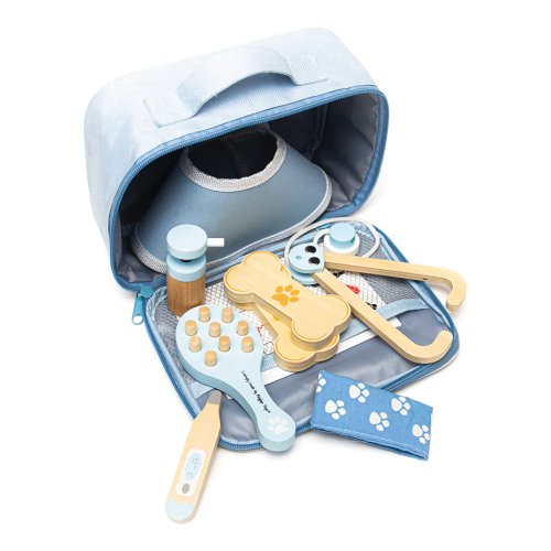 Tato praktická veterinární sada obsahuje vše, co mladí veterináři potřebují, aby mohli ošetřit nemocné medvídky nebo zvířata. Pomocí stetoskopu mohou děti poslouchat srdce pacienta, kontrolovat teplotu pomocí teploměru a dokonce se podívat do uší otoskopem. Tato hrací sada je dodávána zcela bez plastů ve snadno skladovatelné brašně. Hlavní vlastnosti: obsahuje 12 dílůpraktická brašna pro ukládánírozvíjí komunikační schopnosti a prohlubuje lásku ke zvířátkům