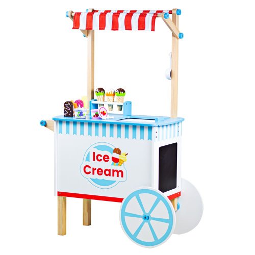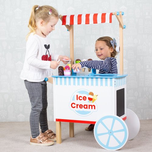 Naservírujte nějakou lahodnou zmrzlinu přátelům a rodině... Tento kvalitní dřevěný vozík na zmrzlinu je dodáván s 6 zmrzlinami, 9 nanuky, 2 zmrzlinovými kelímky se lžičkami a naběračkou na zmrzlinu. Tyto sladké pochoutky jsou dokonalým doplňkem na hraní. Skvělý způsob, jak podpořit kreativní a nápadité hraní rolí. Vyrobeno z vysoce kvalitních, zodpovědně získaných materiálů. Splňuje aktuální evropské bezpečnostní normy. Hlavní vlastnosti: dřevěný vozík na zmrzlinukompletní s 6 zmrzlinami, 9 nanuky, 2 kelímky na zmrzlinu se lžičkami a naběračkou na zmrzlinupomáhá rozvíjet slovní zásobu při prodeji a servírování zmrzliny svým přátelům