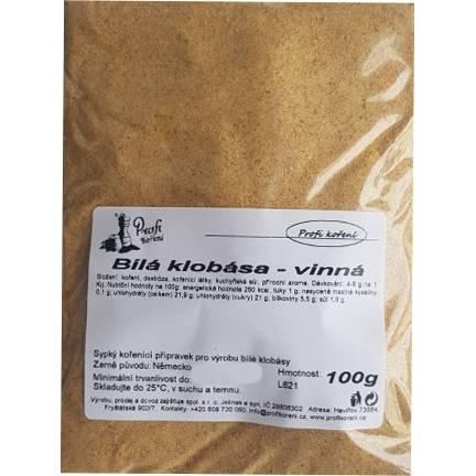 Směs koření na bílou vinnou klobásu. Balení 100 g.