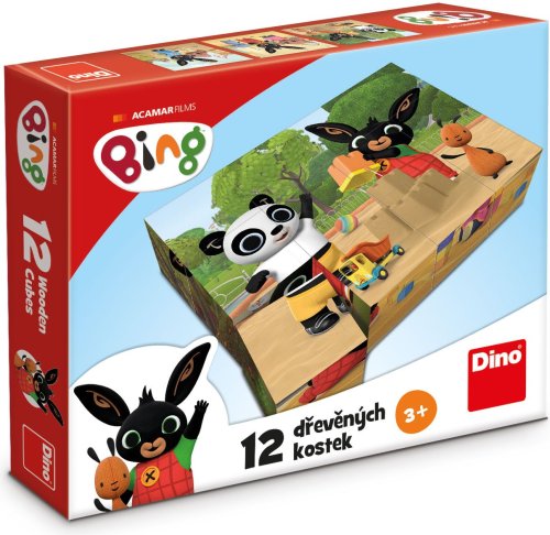 Dětské dřevěné kostičky, ze kterých lze sestavit 6 různých obrázků. Balení obsahuje 12 kostiček. Věk: 3+
