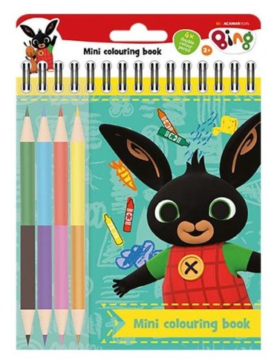 Mini blok obsahuje 10 omalovánek, 18 prázdných listů ke kreslení a 4 oboustranné pastelky.