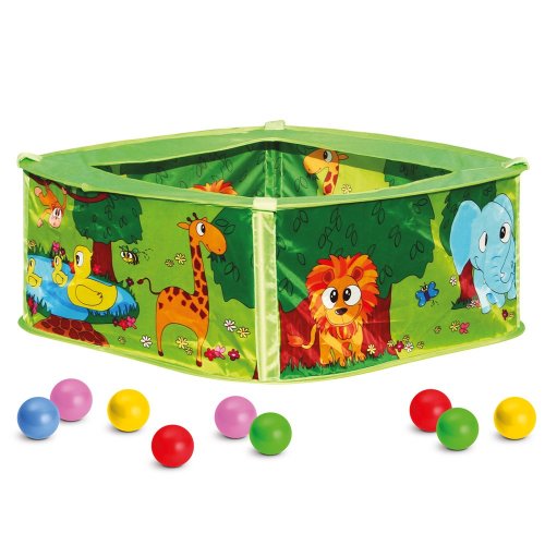 Hrací bazének s množstvím barevných míčků se hodí do každého dětského pokoje. Pro děti skvělá zábava i na několik hodin, podporující senzomotorický vývoj. Barevné dětské míčky jsou měkké, ale odolné a po zmáčknutí se vrátí do původního tvaru. Vhodné pro vnitřní i venkovní použití (za sucha). Bazének lze snadno rozložit i složit pro úsporu místa. Baleno v praktické kartonové krabici vybavené uchem k přenášení. Hlavní vlastnosti: bazének a 50 barevných míčkůvelikost sestaveného bazénku 75x75x30 cmvnitřní i venkovní použitísnadná montážpraktické balení