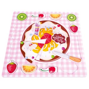 Dřevěná vkládačka bez úchytek pro děti s motivem kulatého sladkého koláče. Děti naskládají jednotlivé "trojúhelníkové" dílky do vyfrézovaného otvoru a následně se mohou pustit do zdobení sladkého dezertu dalšími přísadami. Přidejte ovoce, šlehačku nebo třeba svíčku dle vlastní fantazie. Tak hurá do zdobení...