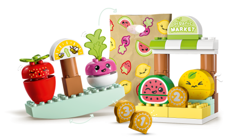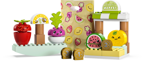 Tvořivá vzdělávací stavebnice pro nejmenší Hračky LEGO DUPLO dávají těm nejmenším možnost zažít neomezené tvoření, sebevyjádření a zábavné učení. Tato stavebnice inspiruje děti a dospělé k společnému interaktivnímu hraní, ve kterém se z jednoho stane stánkař s ovocem a zeleninou a z druhého zákazník. Stavebnice DUPLO umožní rodičům a malým dětem sdílet vzácné vývojové milníky, zatímco si spolu hrají a staví.