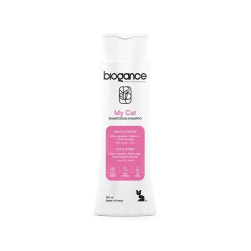 Regenerační šampon pro kočky Biogance My Cat obsahuje výtažky z břízy a arganový olej, ty mají vyživující, regenerační a preventivní vlastnosti. Vysoký obsah esenciálních mastných kyselin, omega 6 a vitaminů A a E, které vyživují srst, hydratují pokožku a zároveň ji chrání před působením agresívních vnějších faktorů (znečištěné ovzduší, slunce, tabák, ...). Výsledkem používání je regenerovaná pokožka a hebká a lesklá srst. Šampon je vhodný i pro koťata. Použití: Naneste na mokrou srst, jemně vmasírujte a potom důkladně opláchněte. Naneste znovu, nechte 2 minuty působit a poté opět důkladně opláchněte. Upozornění: Zabraňte styku s očima. Určeno pouze pro zvířata.