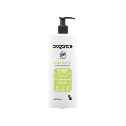Biogance Nutri Repair je vynikající šampon pro psy, který zklidňuje drbání. Výtažky z bodláku a avokádový olej zabezpečují trojitý účinek: vyživují, zklidňují a obnovují poškozenou srst. Obsahuje bioaktivní látky. Vyrobeno bez použití parabenů. Neutrální pH. Šampon je vhodný i pro citlivé psy a štěňata. Použití: Šampon naneste na mokrou srst, jemně vmasírujte, nechte 2 minuty působit a potom důkladně opláchněte. Upozornění: Zabraňte styku s očima. Určeno pouze pro zvířata. BIOGANCE® je první francouzská řada kosmetických výrobků pro domácí zvířata, která se inspirovala přímo z naší přírody. Produkty jsou vyráběny bez použití parabenů, fenoxyethanolu a živočišných olejů. Výrobky BIOGANCE® NEJSOU testovány na zvířatech.
