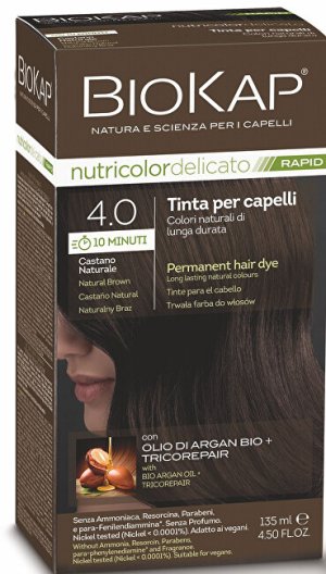 DELICATO RAPID barva na vlasy - 4.00 Přírodní hnědá tmavá. Šetrná a extra rychlá přírodní barva na vlasy. Výsledkem je dokonalá jasná barva, lesk a zdravý vzhled vlasů a perfektní překrytí šedin. Exkluzivní a inovativní TRICOREPAIR komplex (rýžové proteiny, výtažek z vrby a lipofilní ovocné kyseliny) zajišťuje ochranu vlasů a regeneraci.