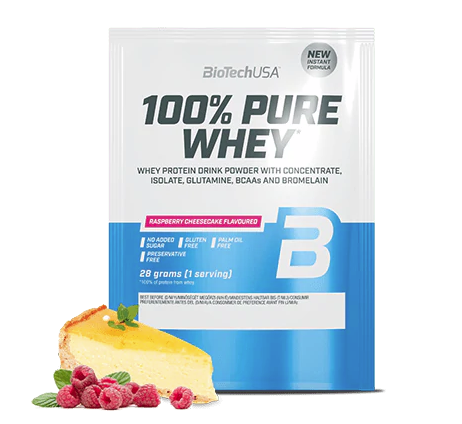 100% Pure Whey je vysoce kvalitní proteinový prášek s vysokou biologickou hodnotou. Je kombinací syrovátkového koncentrátu, syrovátkového izolátu a přidaných aminokyselin (L-glutamin, L-arginin a BCAA). Díky nízkému obsahu sacharidů a tuků je vhodný i v dietní fázi. Neobsahuje lepek, palmový olej, ani přidaný cukr. K dostání je v pestré škále příchutí. Přednosti: