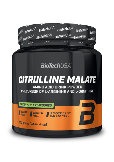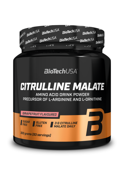 100% čistá aminokyselina L-citrulin malát v prášku. L-citrulin je neesenciální (podmíněně esenciální) aminokyselina, mikroživina, kterou tělo nedokáže produkovat v dostatečném množství, typicky při větší zátěži, a proto je na místě doplnění ve formě doplňků stravy. Pro sportovce je důležitý, protože při užití před fyzickým výkonem podporuje vlastní tvorbu oxidu dusnatého, který pomáhá s prokrvením namáhaných svalů. Citrulin se ve velkém množství vyskytuje například ve vodním melounu. Synergickou kombinací aminokyseliny L-citrulin a kyseliny jablečné je L-citrulin malát. Kyselina jablečná (malát) je organická kyselina, která se vyskytuje v přírodě (například v jablku). Aminokyselina L-citrulin je to, z čeho se skládají aminokyseliny L-arginin a L-ornitin. Jde o formuli velmi oblíbenou mezi sportovci. Doporučené dávkování: