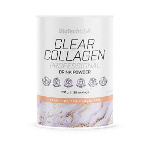 Osvěžující ochucený nápoj v prášku obsahující hydrolyzovaný kolagen, kyselinu hyaluronovou, aminokyseliny, vitamíny, minerály, cukr a sladidlo. vysoce rozpustný a chutný více než 20 g kolagenu na denní dávku (2 x 12,5 g produktu) 105 mg kyseliny hyaluronové ChondrActiv® hydrolyzovaný prášek pro podporu tvorby chrupavek obohacený o kolagen typu II s vitamíny a minerály s aminokyselinami a antioxidanty3 bez cukru bez laktózy bez lepku bez tuku a bez palmového oleje Bez laktózy: méně než 0,1 g laktózy na 100 ml hotového výrobku připraveného k pití. Bez lepku: dle nařízení EU Bez cukru: méně než 0,5 g cukru na 100 ml hotového výrobku připraveného k pití. Bez tuku: méně než 0,5 g tuku na 100 ml hotového výrobku připraveného k pití. Podobně jako Clear Collagen obsahuje produkt Clear Collagen Professional hydrolyzovaný kolagen s přidaným vitamínem C, který přispívá k normální tvorbě kolagenu, k udržení normální pokožky, normální funkci krevních cév, chrupavek, zubů a dásní. Clear Collagen Professional také obsahuje ChondrActiv® hydrolyzovaný prášek pro podroru tvorby chrupavek. Výrobek je obohacen o vitamíny a minerály, které přispívají k udržení normálního stavu pokožky, vlasů, nehtů a chrupavek. Některé z přidaných stopových prvků (zinek, vitamín C, vitamín E, selen, měď a riboflavin) mají antioxidační vlastnosti, které přispívají k ochraně buněk před oxidačním stresem.