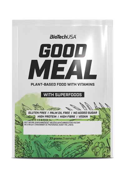 GMO free Vegan Bez přidaného cukru* Bez konzervačních látek Bez lepku** Bez palmového oleje *Obsahuje přirozeně se vyskytující cukry. **Bez lepku podle nařízení EU. Rychle, kvalitně, pestře. Jste neustále na cestách a máte celý den nabitý, ale přesto chcete mít vyváženou stravu? Vyzkoušejte Good Meal, ušetřete čas pro sebe a dodejte svému tělu kompletní živiny. Konzumujte ho v práci, na cestách, doma, po tréninku, při víkendových túrách, ráno, k obědu, k večeři, doslova kdekoli a kdykoli. Jeho obsah a nutriční hodnota je bohatší než jeho chuť v čokoládové i neochucené verzi. 13 plnohodnotných ingrediencí v 1 shaku - Superfood, které je obsaženo v Good Meal shaku je zdrojem kvalitních živin pro vaše tělo. V perfektním poměru, přesně tak, jak je potřeba.