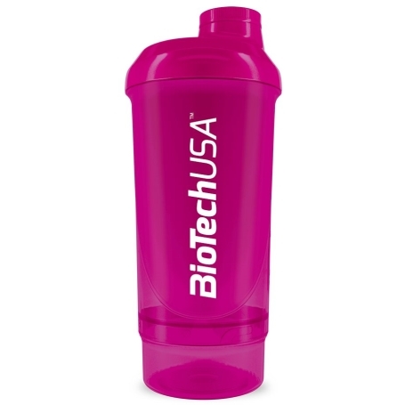 Šejkr Biotech 500 ml se zásobníkem o objemu 150 ml. Přidané sítko pro snadnější rozmíchání obsahu bez hrudek. Šroubovací malé víčko i velký uzávěr skvěle zabraňují úniku vody.