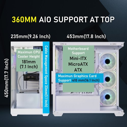 Herní počítačová skříň nabízí stylovou prosklenou bočnici i přední panel a prvotřídní kovovou konstrukci. Skříň je osazena čtyřmi ventilátory o velikosti 120 mm s RGB podsvícením. Potěší také možnost rozšíření o další 3 ventilátory. Samozřejmostí jsou také prachové filtry. Důmyslné řešení umožňuje pohodlné umístění až 360 mm dlouhého výměníku vodního chlazení na horní nebo boční straně. Ve skříni je dostatek prostoru pro chladič CPU do výšky až 170 mm a grafickou kartu o délce až 434,5 mm. Na horním panelu se nachází dva porty USB 3.0, jeden port USB-C, sluchátkový výstup a vstup pro mikrofon. Skříň je dodávána bez zdroje.
